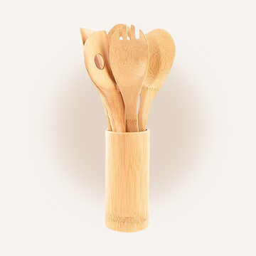 Bamboo Spatula Set with Holder
